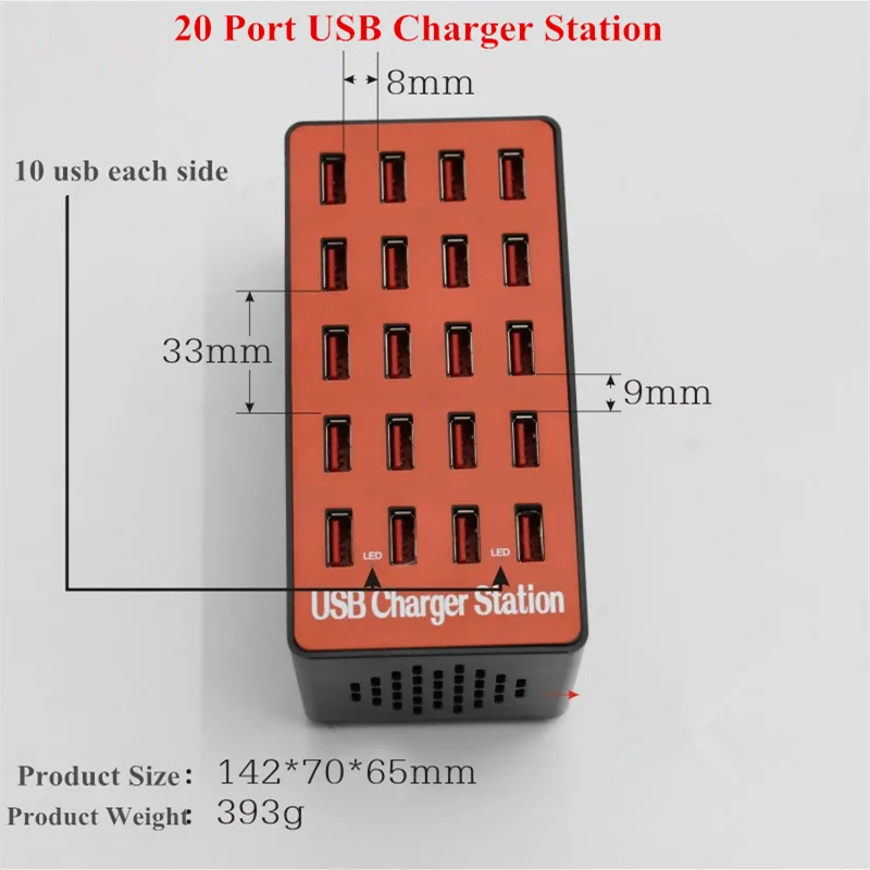 | Go2linK 20 Ports Charging Station 90W 5V USB Charger With LED Display Universal For iPhone X 7 6 6s |